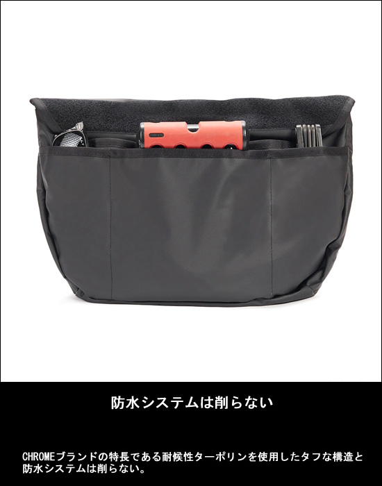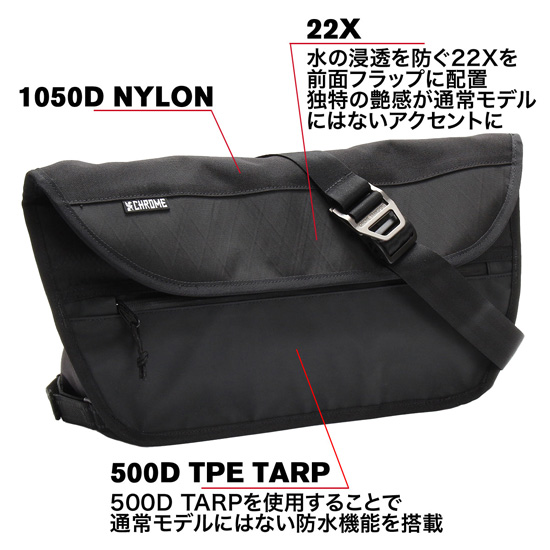 CHROMEのメッセンジャーバッグの強みであるターポリンのタフな構造と防水システムはそのままに
