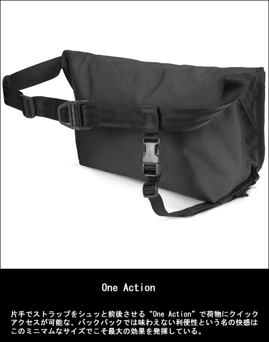 片手でストラップをシュッと前後させる“One Action”で荷物にクイックアクセスが可能な