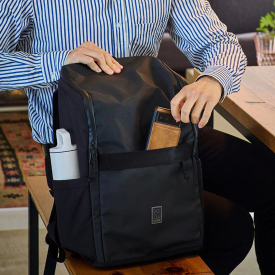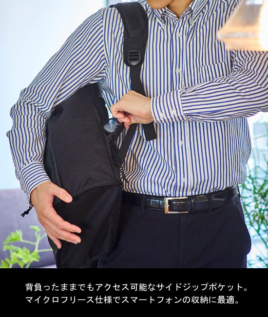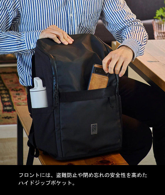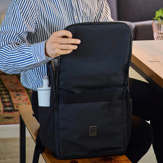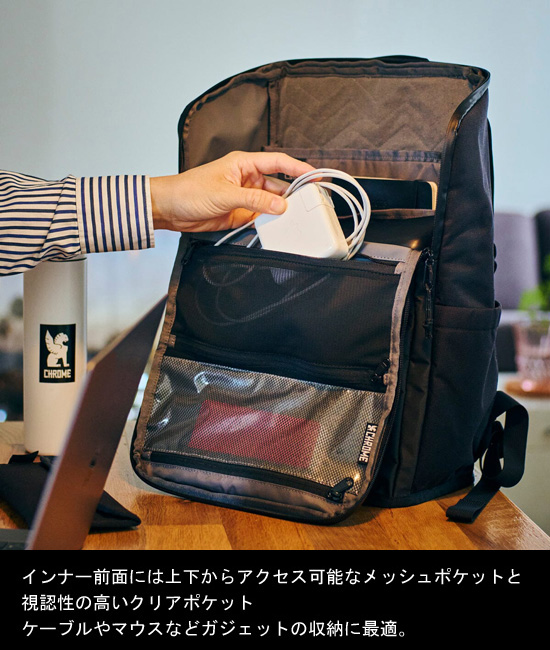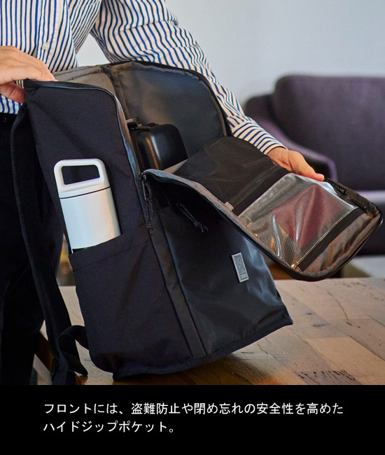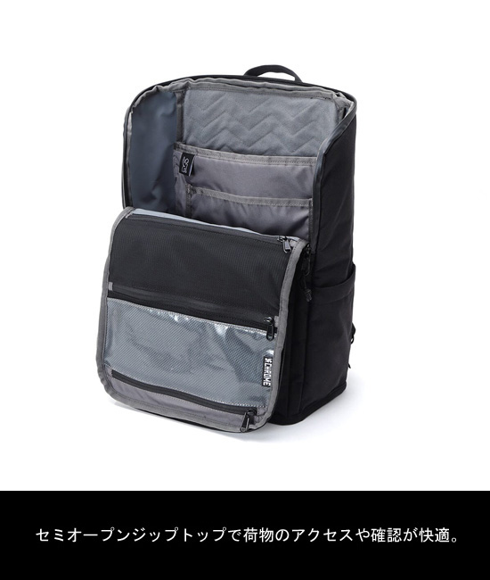 特徴的なセミオープンジップトップは、視認性が高いことで荷物の出し入れがしやすく