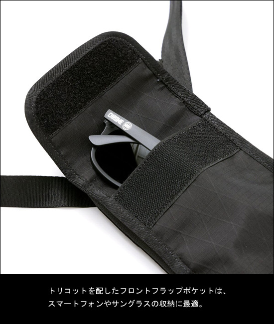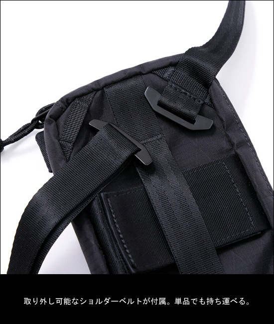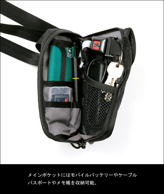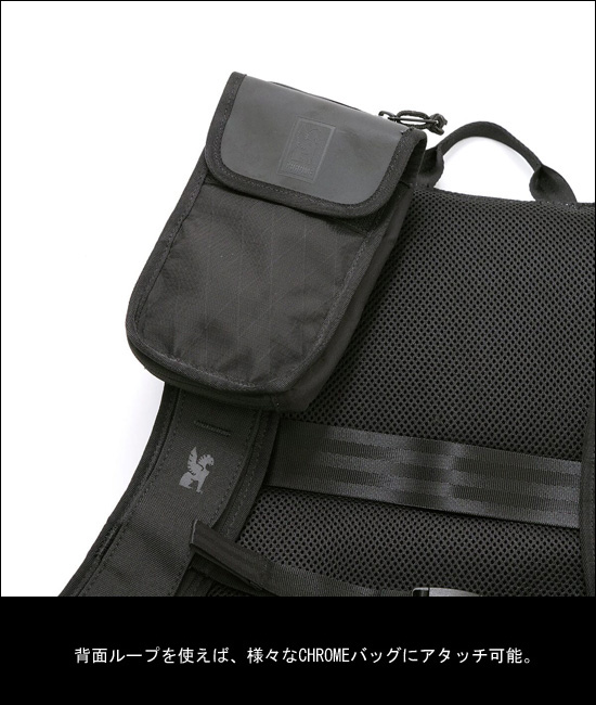 CHROMEのバッグに取り付けたり、付属のショルダーストラップを使用して単品で使用可能。