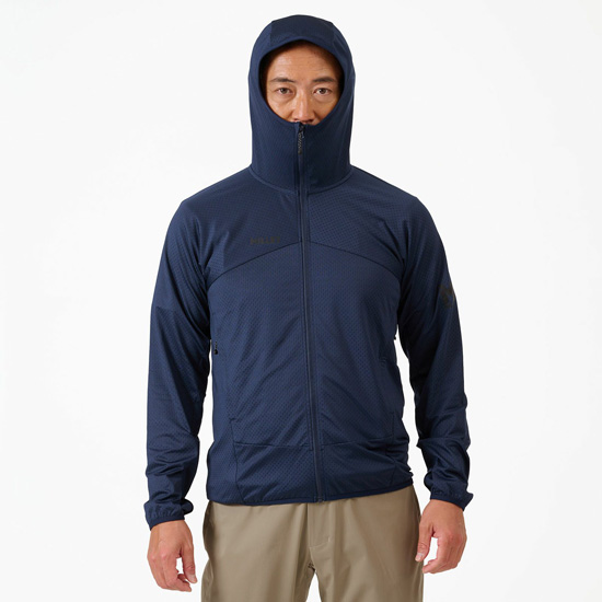 ちょっとした肌寒さを軽減したいときや、保温しつつ汗を発散させたい低温下での運動時などに最適な、通気性に優れた薄手のサーマルフーディー。
