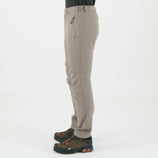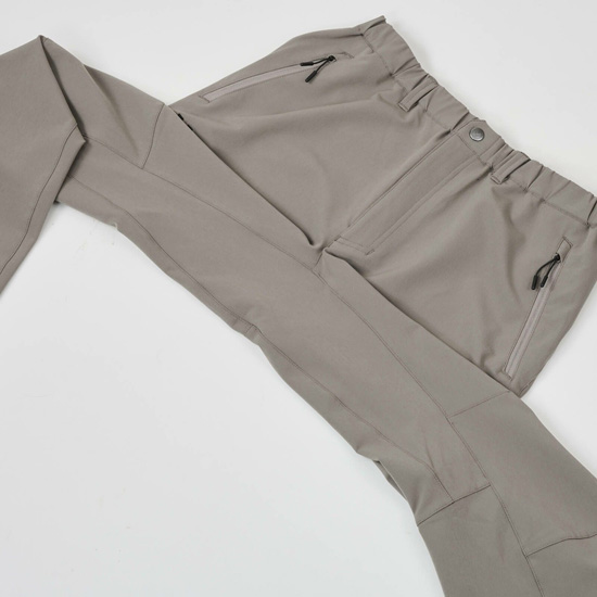 寒い季節のトレッキングや登山での動きやすさにとことんこだわったトレッキングパンツ。細身のテーパードシルエットで、股下部分や膝にしっかりと効いた立体裁断と4方向にストレッチする二重織素材によって、下半身の大きな動きにも突っ張り感やストレスのない自然な穿き心地を提供します。ウエストはゴムとドローコードで幅広い体型に調整可能+U62便利で安全なジップ付ハンドウォーマーポケット、背面にもジップポケットを1つ備えています。