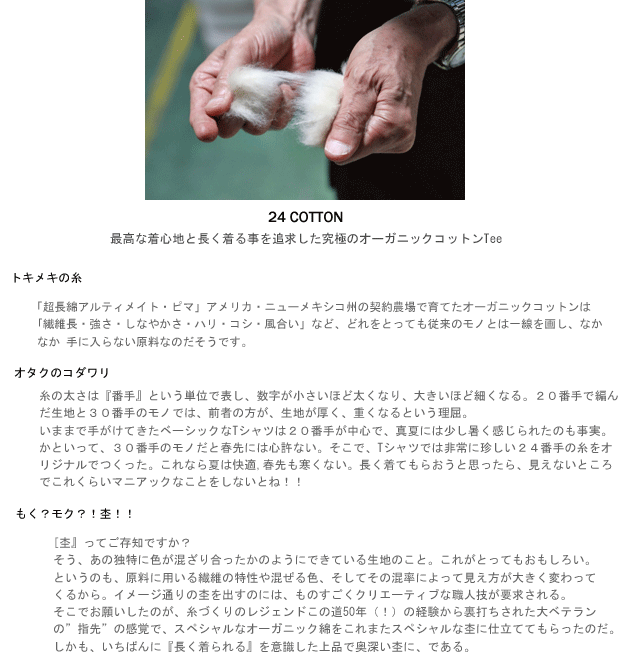 ・24/- オーガニックコットン天竺のオリジナル杢を使用。