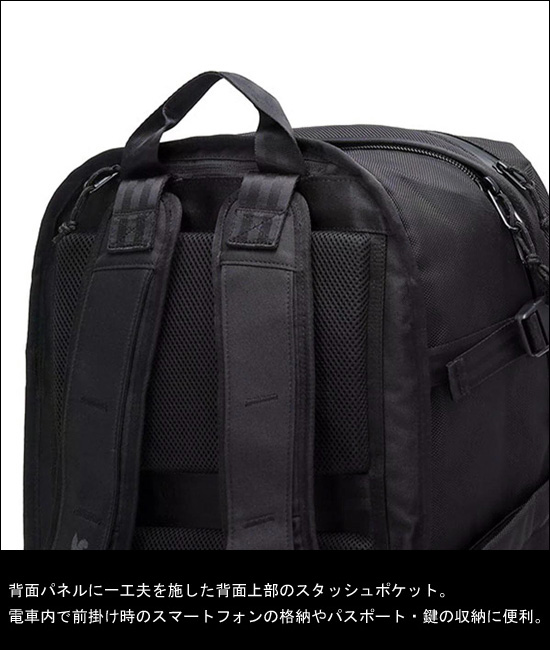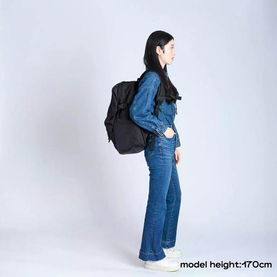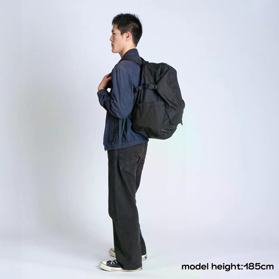WATER RESISTANT:突然降ってきた短時間のライトな雨などから荷物を守るための耐水素材を使用したモデル